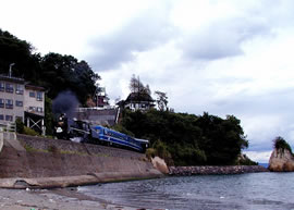 2002年に氷見線90年記念として走ったSLシーサイド号はC56-160が出向いてきた。 |