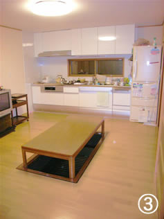 台所の無駄な空間をなくして使用しやすいスペースにした冷暖房効率UPのための部屋境等の建具の入替及び外部窓を断熱サッシとしました。旧浴室は壊さず雑庫としての利用を提案しました。タイヤスペースとしては旧ボイラー小屋スペースを利用。
