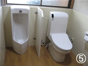 ・トイレ床タイル→木下地コンパネ銘木フロアー パーテ ーション撤去 小便器取替 UFJ300CV