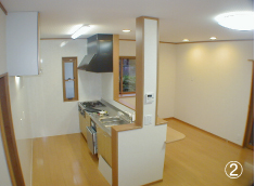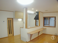 水廻り(トイレ、洗面所、浴室)の老朽化に伴い3年前施工のシステムキッチンも移設する以前は暗かったキッチンをオ-プン型にしLDKを広くすることにより光、風の通りがよくなった。