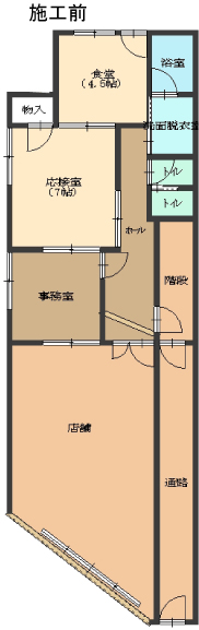 1Fだけの生活を考慮して全ての機能を結集させた。以前は前面に店舗があったために玄関も暗いイメ-ジだった。玄関を前面にした大きな間口をもってくることにより明るくなった。
