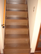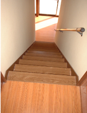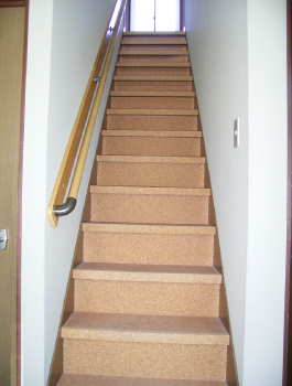 中古住宅を購入し、玄関手摺や階段床コルク貼りなどを施工 階段手摺は既存のものがいいかげんであったため新たに階段手摺を取り付けた。